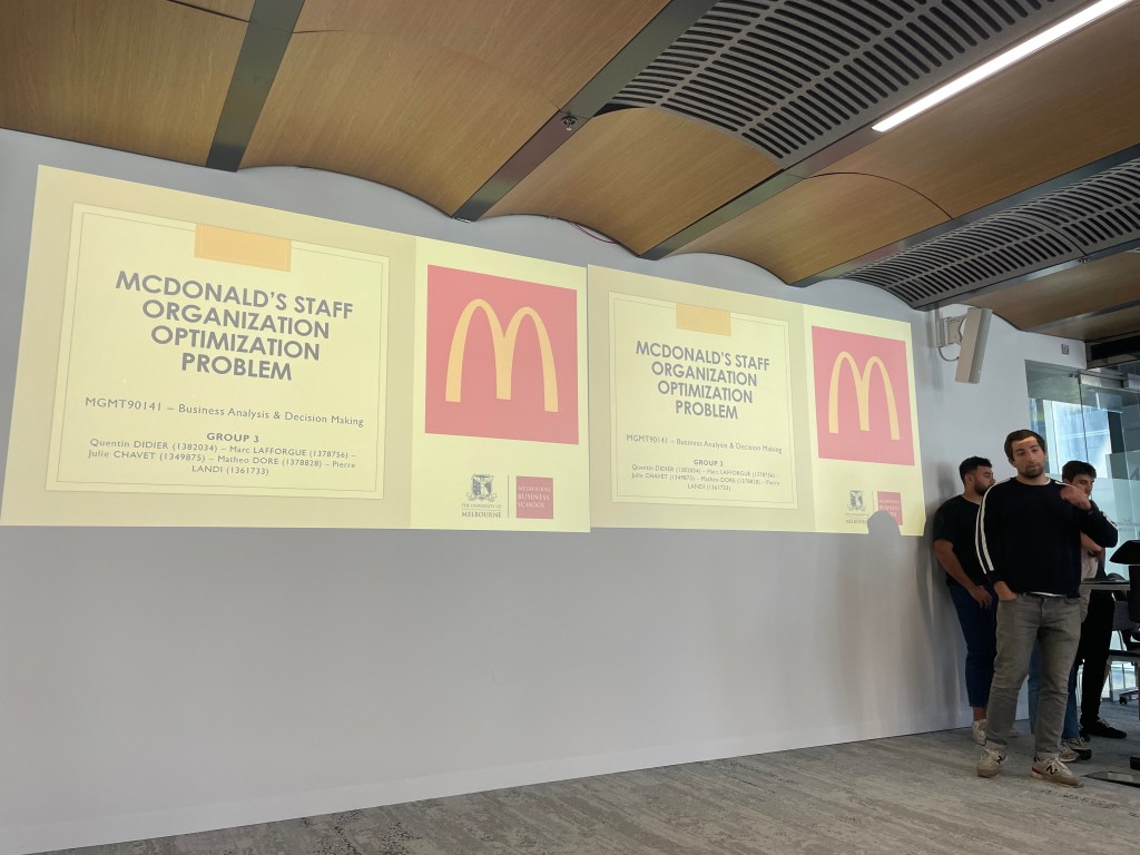 - Даалгавар 2: Сонгосон компанийхаа, сонгосон асуудлыг шийдвэрлэх математик модель боловсруулж, загвараа ашиглан асуудлыг шийдвэрлэж, зөвлөмж бичих. Үгийн тоо 4000 байх. Шаардлагын хувьд моделийг боловсруулахдаа Шугаман (Liner Programming Model) болон Бүхэл тоон Шугаман Программчлалын арга (Integer Liner Programming Model) ашиглах, Мэдрэмжийн шинжилгээ (Sensitivity test) хийж бизнесийн шийдвэр гаргалтад хэрхэн ашигласан талаар зөвлөмж боловсруулах. Багуудын хувьд Tesla-ийн үйлдвэрийг дэлхийн аль бүс нутаг, аль оронд байгуулбал хамгийн бага зардлаар, хамгийн өндөр ашигтай ажиллах, ингэхдээ байгаль орчинд хамгийн бага хохиролтой байлгах вэ? гэдгээс эхлээд McDonalds, Costco, Amazon -ий хүний нөөц, ханган нийлүүлэлтийн сүлжээг оновчлох даалгаваруудыг гүйцэтгэсэн ба богино хугацаанд энэ хичээлээр ямар их мэдлэг, ур чадварыг олж авсан нь харагдсан.